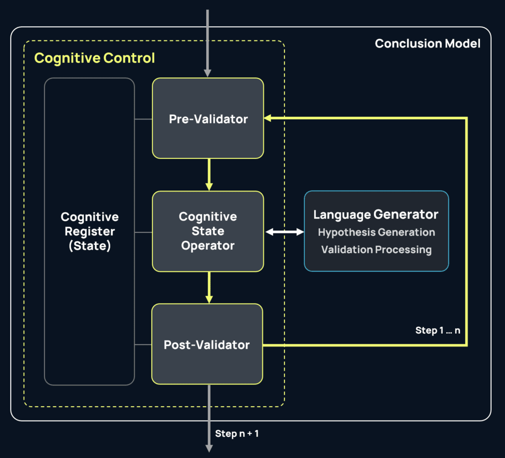 Genau hier kommt Kognitive Kontrolle ins Spiel: durch funktionale Sequenzierung werden lange Gedankenketten stabilisiert. Diese Aufgabe kann der Token-Raum alleine strukturell nicht leisten, da er keine Konzepte für funktionale Zustände kennt.